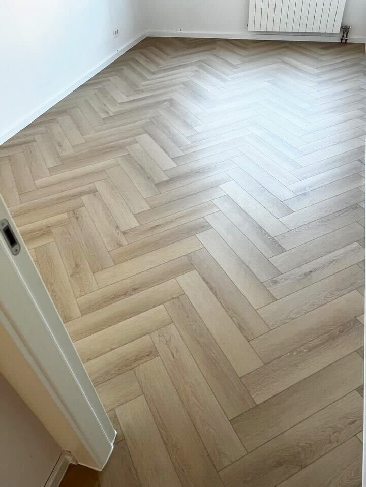 Nell’appartamento di 62 m² a Zagabria, abbiamo installato con successo il rivestimento per pavimenti Winflex Birmingham nel popolare motivo a spina di pesce. Questo disegno amplia visivamente lo spazio e dona all’ambiente un aspetto moderno ed elegante. Il rivestimento si distingue per l’alta qualità, la resistenza e l’estetica, rendendolo una scelta ideale per interni contemporanei.